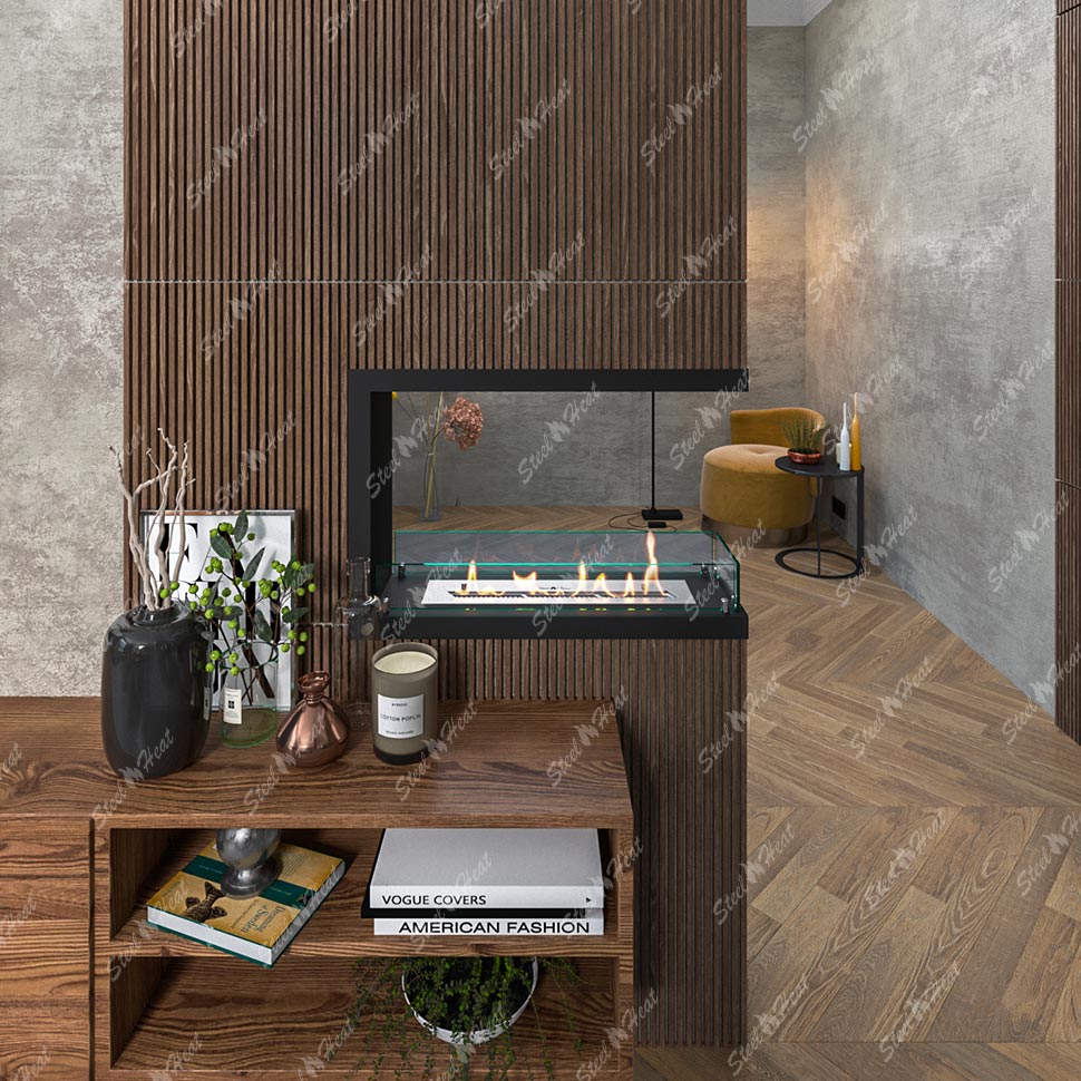 ВстраиваемыйБиокамин торцевой SteelHeat Leader 700предназначен для встраивания в глухие ниши из гипсокартона, кирпича, пеноблоков, бетона.